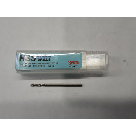 D2107019 Сверло из быстрореж. стали Straight Shank HSSCO 8 DIN 1897 с цилиндрич. хвостиком 1.9Х11Х36