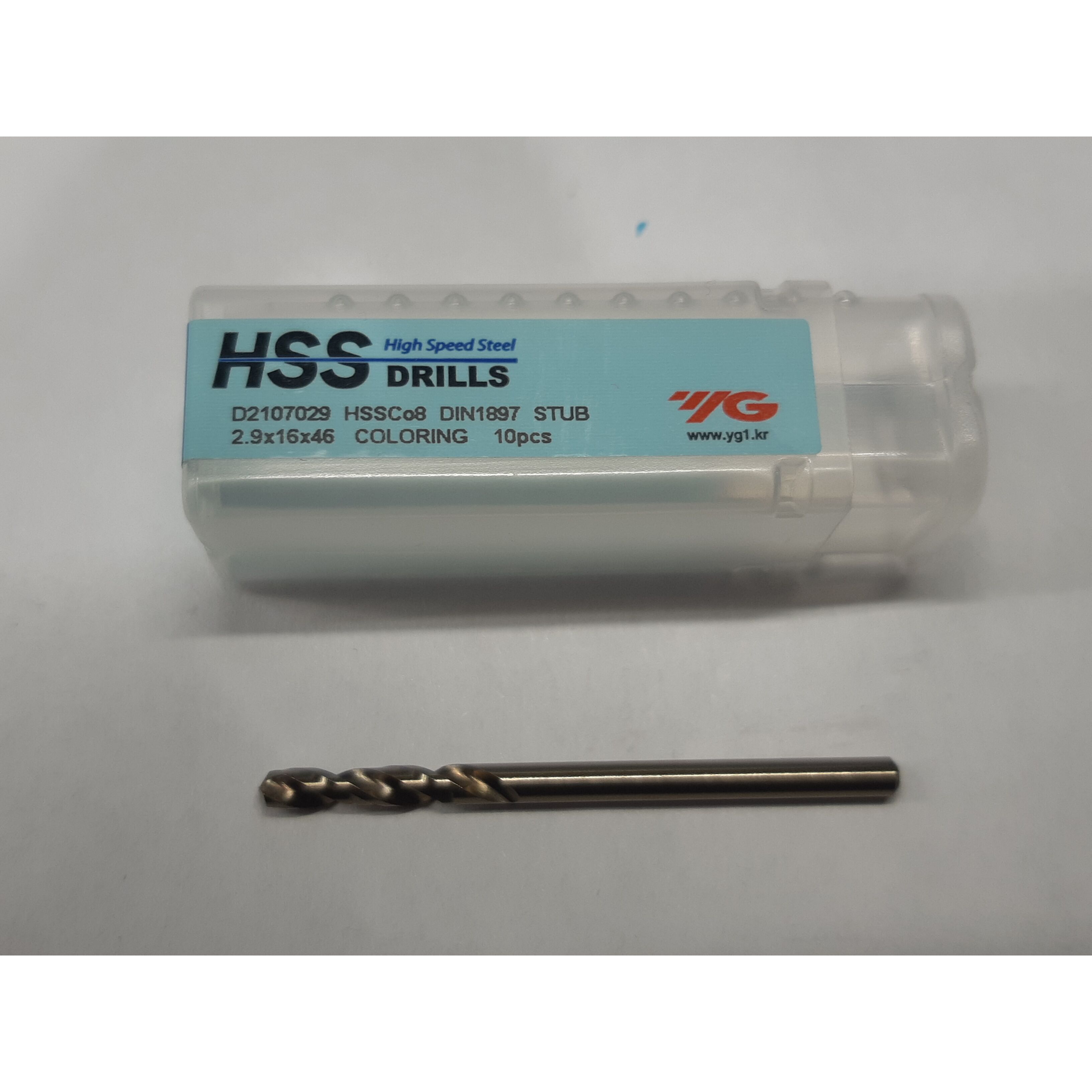 D2107029 Сверло из быстрорежущей стали Straight Shank HSSCO 8 DIN 1897 с цилиндр.хв. 2.9X16X46 YG