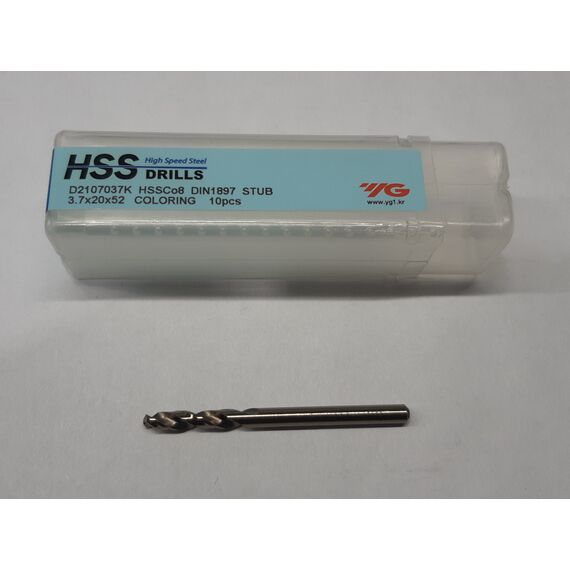 D2107037 Сверло из быс.реж. стали Straight Shank HSSCO 8 DIN 1897 с цил. хв. 3.7X20X52